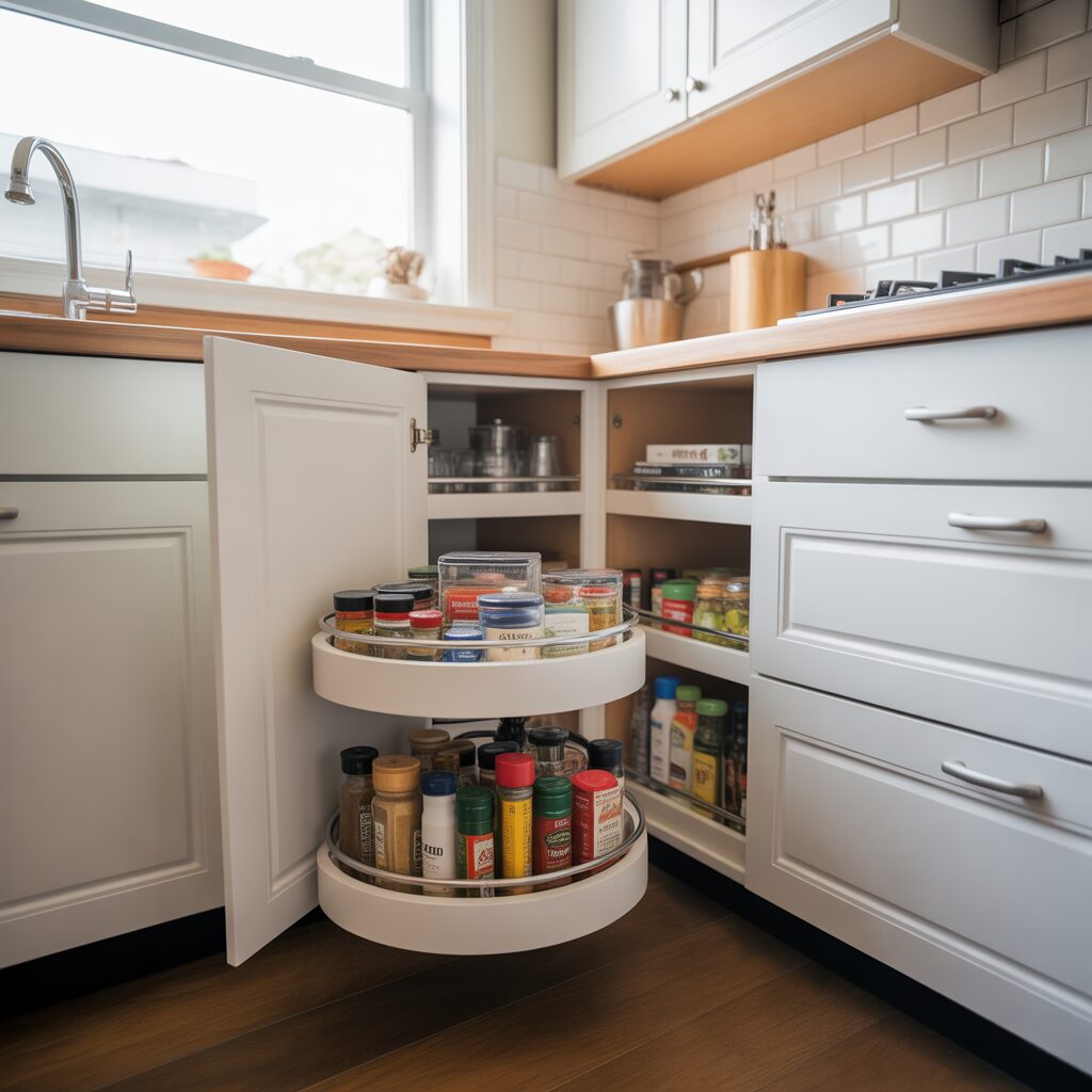 Corners can often go unused, but in L-shaped kitchens, they’re valuable real estate. Use corner pull-out shelves, lazy Susans, or angled cabinets to make the most of these hidden spaces. A well-designed corner storage unit keeps your kitchen organized while maintaining easy access to everyday items.