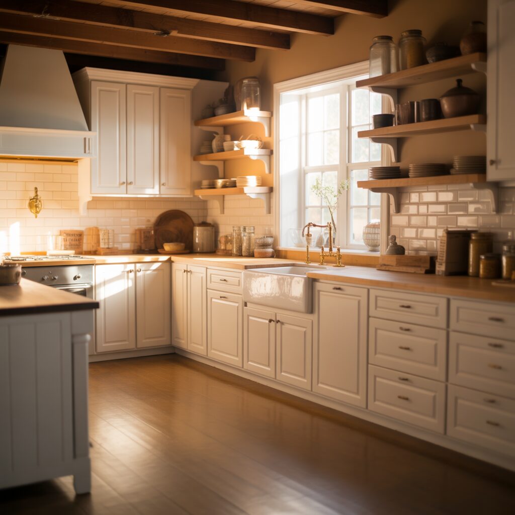 8. Farmhouse-Style L-Shaped Kitchens for Warmth and Charm