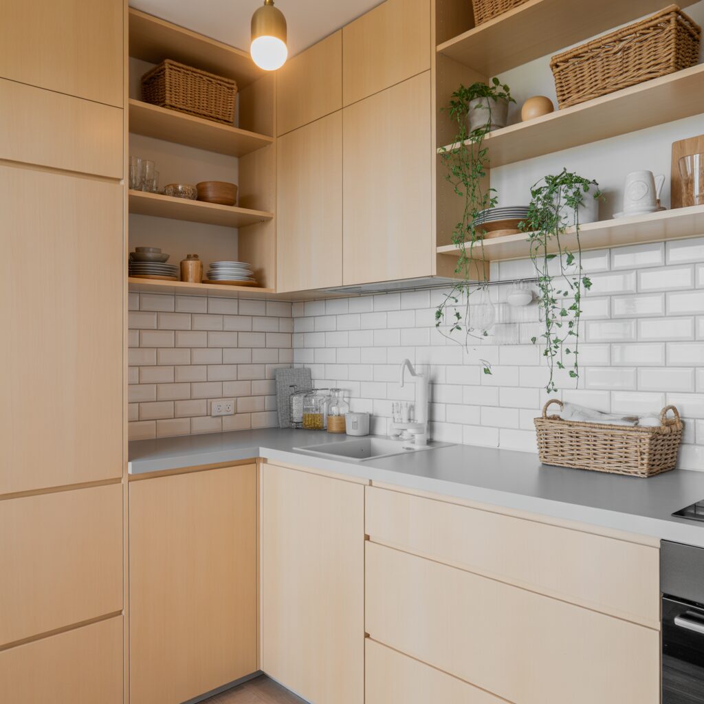 Scandinavian kitchens are popular for small spaces because they blend simplicity with warmth. Think light wood cabinetry, white tile backsplashes, and soft gray accents. Open shelving and natural textures make the kitchen feel airy and welcoming. Add indoor plants, woven baskets, and pendant lighting for that cozy Nordic vibe.