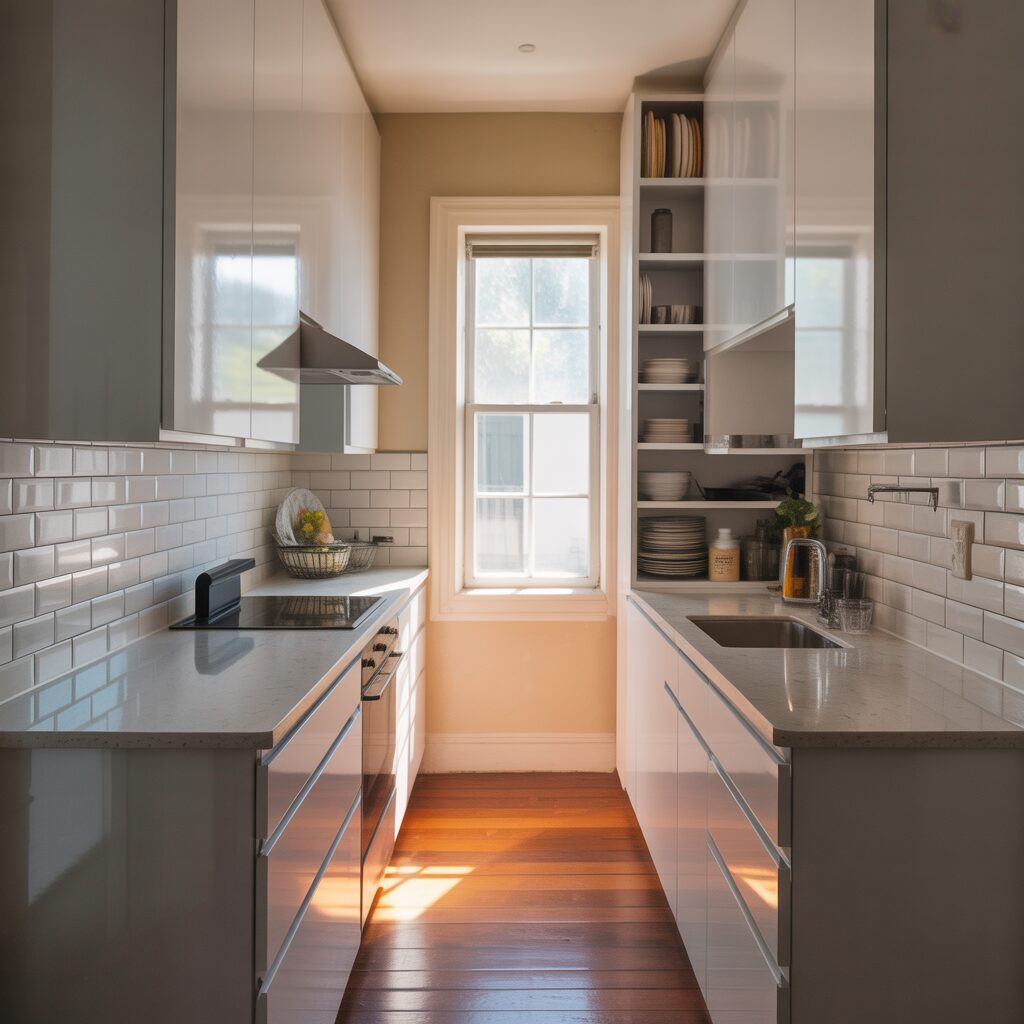 A galley kitchen is one of the most efficient layouts for small homes. Featuring two parallel counters, this design maximizes every inch of space. In photos, you’ll notice galley kitchens often use bright color palettes and glossy finishes to enhance light reflection. Smart storage solutions like pull-out drawers and vertical shelving make galley kitchens both practical and elegant.