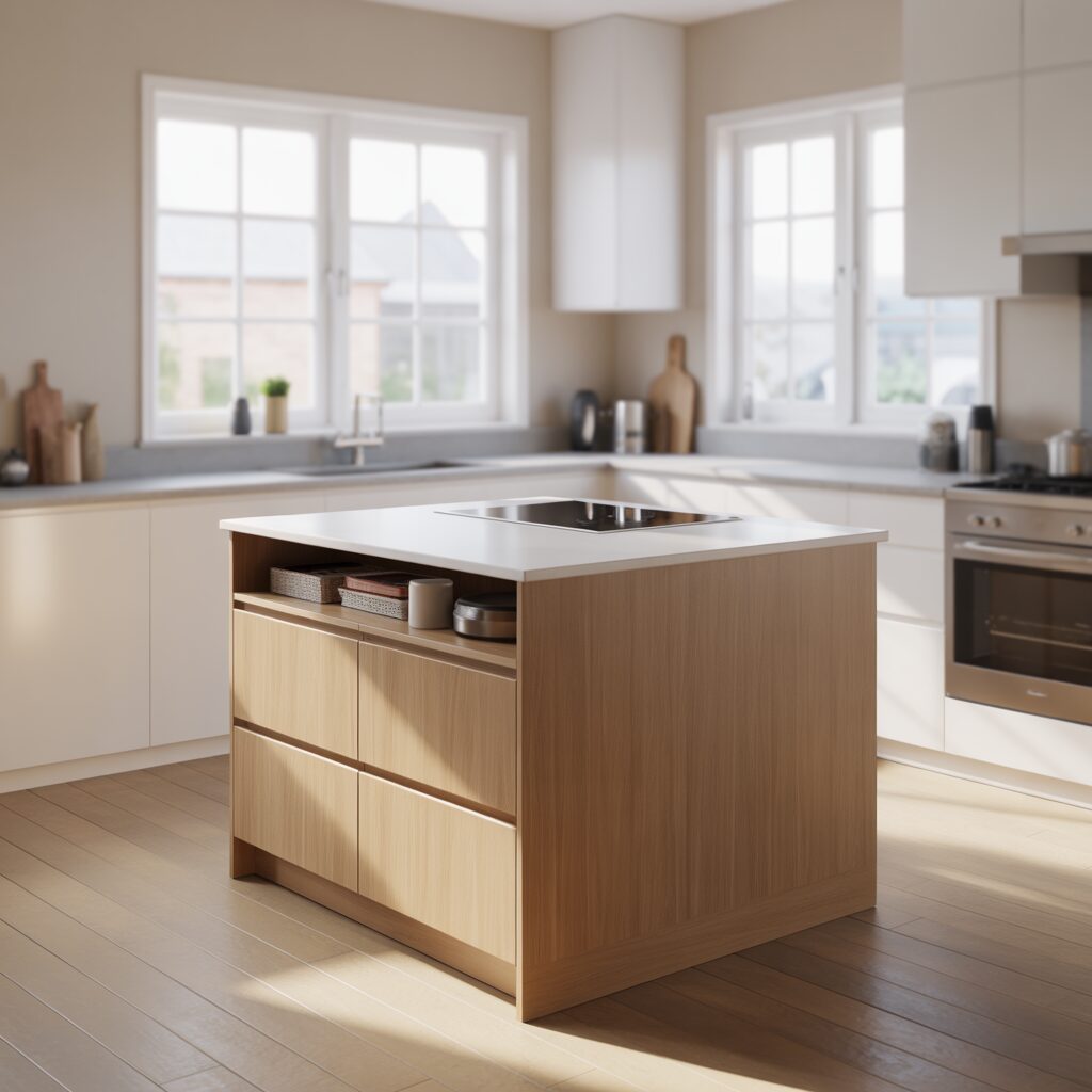 Even in small kitchens, a compact island can provide extra workspace and seating. In design galleries, you’ll find islands with built-in storage, foldable countertops, or slim rectangular shapes that don’t overwhelm the room. Choose light wood or quartz finishes to keep the look bright and uncluttered.