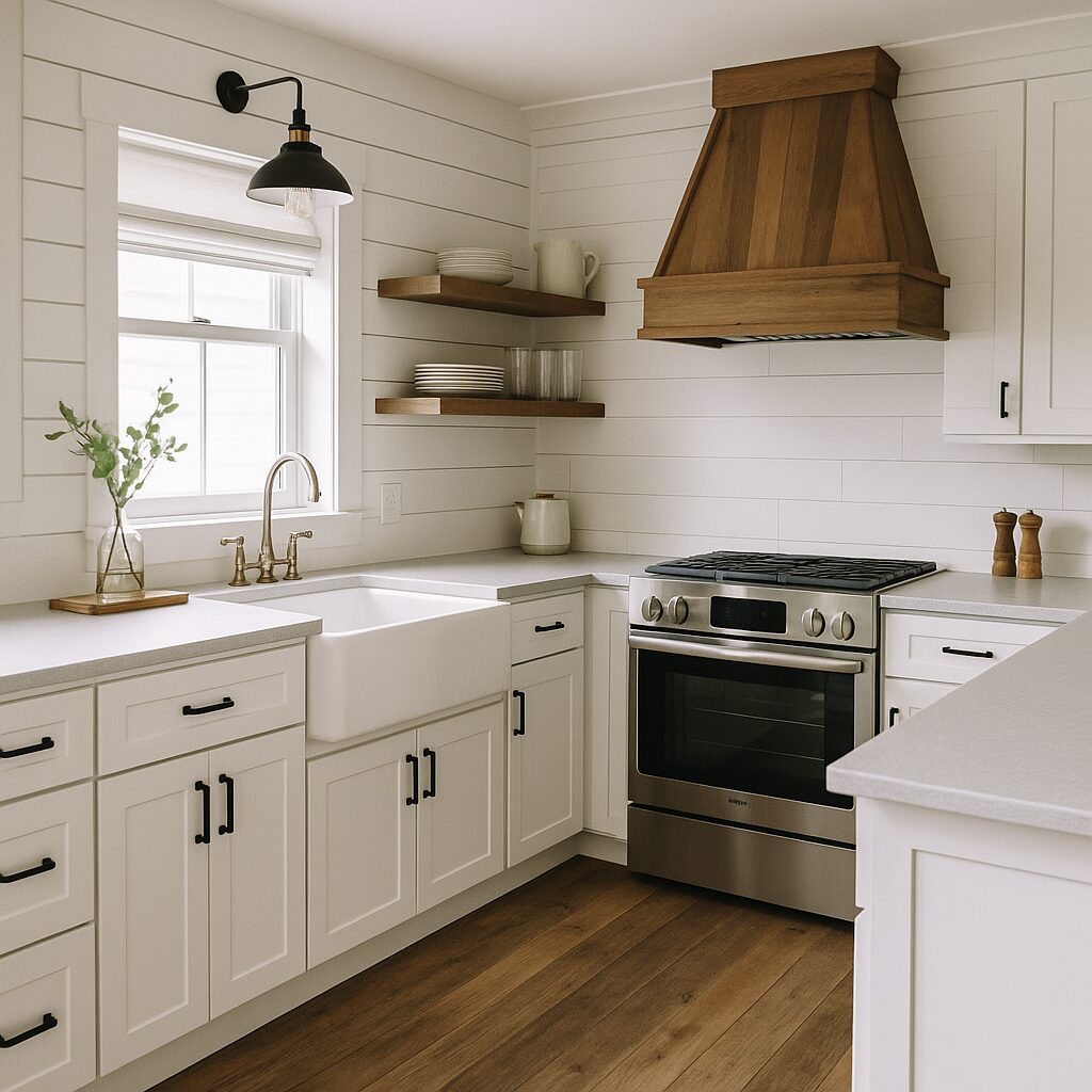 Modern farmhouse kitchens strike the perfect balance between rustic character and contemporary comfort. Pair traditional elements like shiplap walls or beadboard paneling with modern stainless-steel appliances, sleek quartz countertops, and minimalist lighting. This combination creates a kitchen that feels timeless yet current — where nostalgia meets functionality.